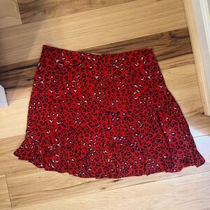 LOVERS + FRIENDS Red Sahara Cheetah Print Lena A Line Mini Skirt Size M Ruffle