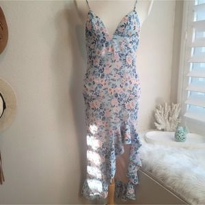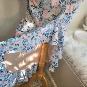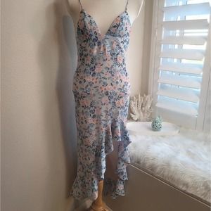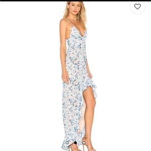 LOVERS + FRIENDS x REVOLVE AHAMANI ASYMMETRICAL GOWN IN BLUE MEADOW FLORAL XSMAL