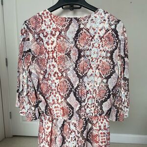 Lovers + Friends Epiphany python pink print romper with lace-up front. Elastic gathered waist. Pockets. New without tags.