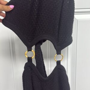 Elegant black knit jumpsuit by Zara. Features a textured design. Ideal for versatile styling.