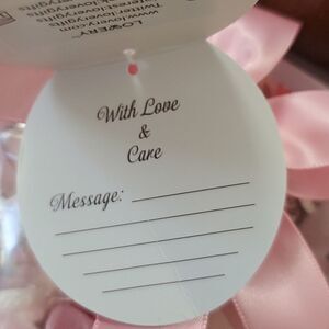 • Soft Dense Bath Pouf Heart Shaped Wire Basket Ribbon and Hangtag