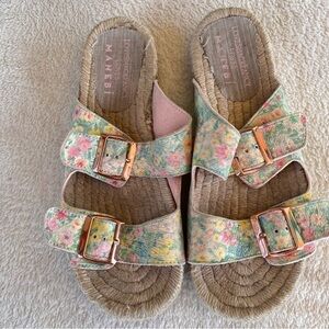 LOVESHACK FANCY X MANEBI NORDIC RAFFIA ESPADRILLE FLORAL SLIDE SANDALS S…