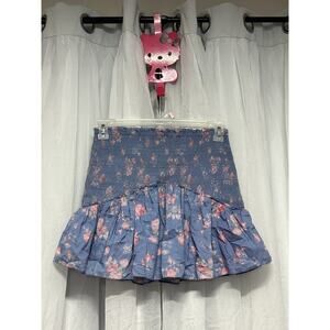 LOVESHACKFANCY - ANGUILLA MINI SKIRT - FADED DENIM MED smocked floral Cowgirl