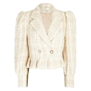 NWT LOVESHACKFANCY BRAELYNN TWEED JACKET IN WINTER WHITE.