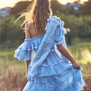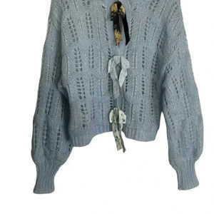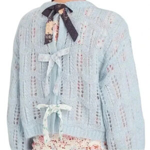 LOVESHACKFANCY Blue Bow Back Sweater Size XS Fairycore Cottagecore Romantic
