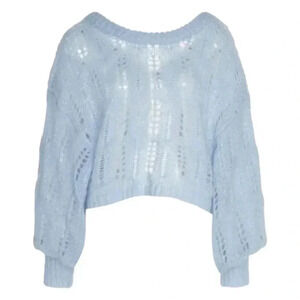 LOVESHACKFANCY Blue Shimmer Bow Back Sweater Size XS Fairycore Romantic Dainty