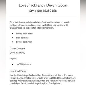 LOVESHACKFANCY Devyn white Gown V-neck Maxi /size 6