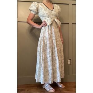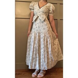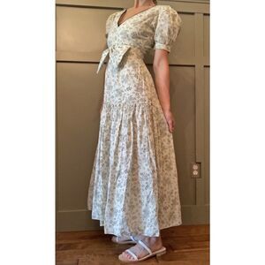 LOVESHACKFANCY Dominique Dress Cream Floral Boho Maxi Bow Detail Size 00 New NWT
