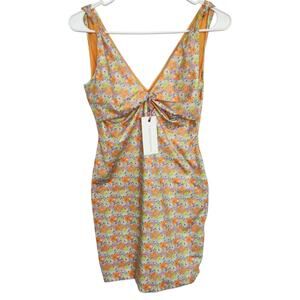 LOVESHACKFANCY Farida Dress in Tangerine Sky Floral S Beach Resortwear Party.