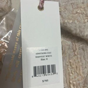 BRAND NEW, with TAGS, LOVESHACKFANCY Armstrong Houndstooth Wool Coat. Color. Harvest White Size 0.