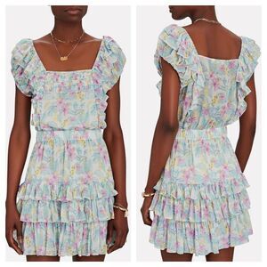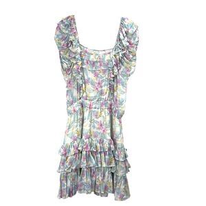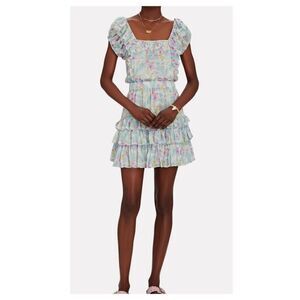 LOVESHACKFANCY Ivoire Floral Chiffon Mini Dress size S Multi