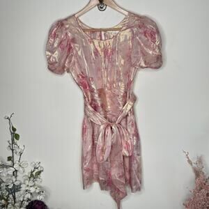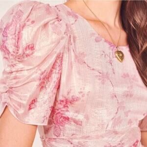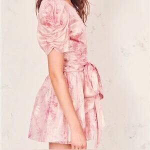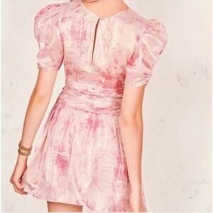 LOVESHACKFANCY Mercy Silk Metallic Puff Sleeve Mini Dress Pink Sz 6 $530 {LL13}