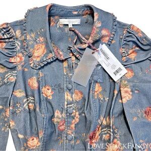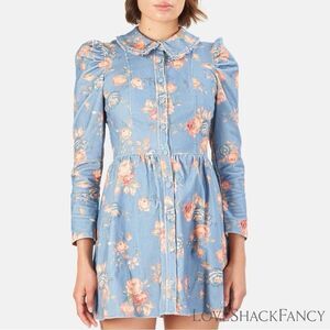 LOVESHACKFANCY **NWT** Beyers Corduroy Mini Dress in Faded Denim Floral