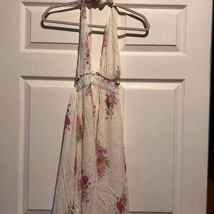 This sleeveless sundress features a halter neckline and a flattering gathered waist, perfect for casual resort wear.