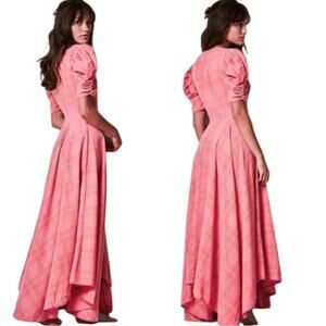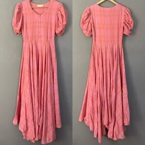LOVESHACKFANCY Puff Sleeve Maxi Dress Fairy hem Cottagecore Preppy Pink Plaid 0