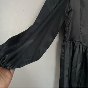 LOVESHACKFANCY Satin Mini Dress Black Dark Whimsigoth Puff Sleeve NWT 6