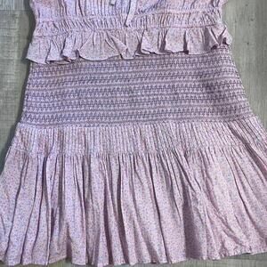LOVESHACKFANCY Toto Ruffle Dress size Large. A smocked waistband with ruffle trim and puff sleeves finish this dress, which can be worn as a top or mini dress.
