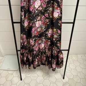 LOVESHACKFANCY-BEAUTIFUL- ALL SILK Black & Floral Gown Size 0 with POCKETS!
