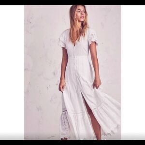 LOVESHACKFANCY Jodie Eyelet Ruffle White Dress $695 Size 4 Button Down