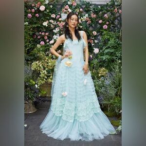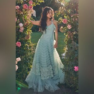Turn heads in this forever timeless gown featured in a tiered design with ruffled tulle trim and lovely lace inserting throughout for a forever classic look no matter the occasion.
