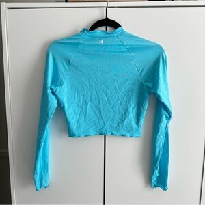 SOLID LONG SLEEVE CROPPED RASHGUARD WITH OPALESCENT RHINESTONE DETAIL
