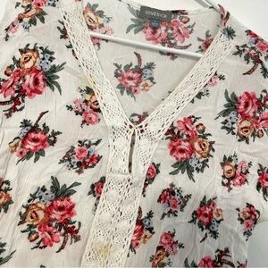 LOVESICK BY TORRID 0 Plus Size White Pink Floral Crochet Lace Short Sleeve Top