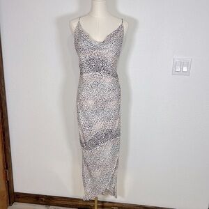 LOVESTITCH Cowl Neck Strappy All Over Pastel Leopard Abstract Print Long Dress
