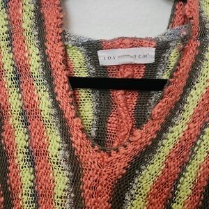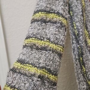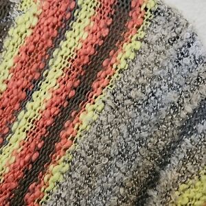 Breathable hooded poncho, nice grey, yellow, green striped colorwave.
