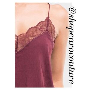LOVESTITCH Lingerie Inspired Camisole Strappy Tank, NWT - BURGUNDY