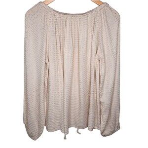 LOVESTITCH Nordstrom Zara Free People Anthropologie boho peasant blouse flowy billowy balloon sleeves hippie gypsy bohemian feminine gold champagne casual dressy all seasons womens top boutique drawstring neckline holiday glam