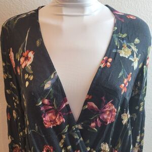 Beautiful floral deep cut vneck top. The top has a slight pull on front as pictured.
