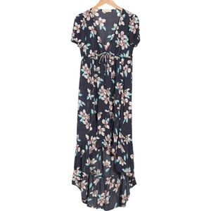 LOVESTITCH Floral High/low Dress In Midnight Blue