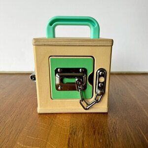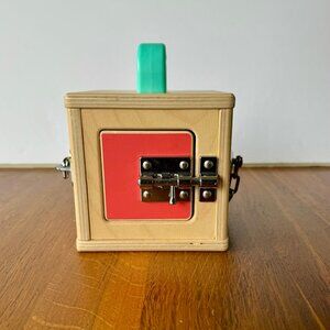 The LOVEVERY lockbox toddler yoy is a wooden Montessori latch box designed to spark curiosity and develop fine motor skills. It's one-size-fits-all design makes it a great educational toy for all toddlers. Only available as part of a subscription, this lockbox has 4 different types of latches for your toddler to experiment with. It's in very good condition with some scratches on the bottom as pictured.