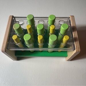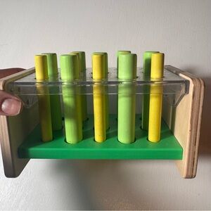 LOVEVERY green/yellow Wooden Posting Peg Stand game Montessori/development toy