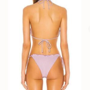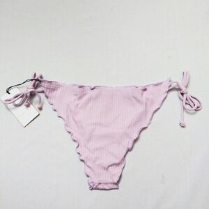 LOVEWAVE Petal String Bikini Bottom Swimsuit Ribbed Lettuce Trim Edge Lilac XL