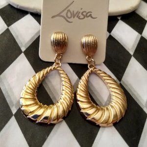 ONLY **1** PAIR LEFT!!! NEW!!! LOVISA 1980's Inspired Gold Ribbed Texture Pear Shape Drop Earrings**Gold-tone Earrings have a Ribbed Texture all over. Inspired by the 1980's these Earrings will take you back!**Earrings have Post Backs**NEW ON HANG TAG!
