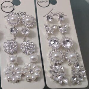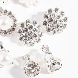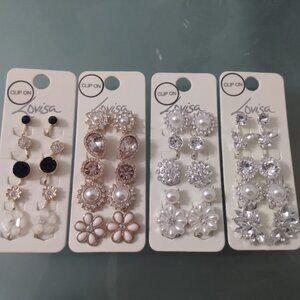 ONLY **1** SET/LOT LEFT!!! NEW!!! LOVISA 5pc LOT Flower/Round/Clear Crystal Pearl Clip On Earrings Set**Lot Includes 5 Pairs of Silver-tone Earrings~1 Pair is a Rose Flower (Has Clear Crystal in the Middle) + 1 Pair is a Round Cluster of Clear Crystals + 1 Pair is Round Pearl framed with Clear Crystals + 1 Pair is Round Pearl + 1 Pair is a Flower with Individual Pearls as the Petals with a Clear Crystal in the Center! Gorgeous Earrings you will Cherish...They would also be a Fabulous Gift!**NEW ON HANG TAG!