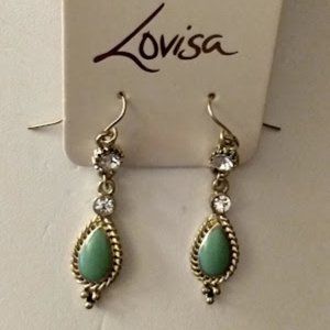 ONLY **1** PAIR LEFT!!! NEW!!! LOVISA Vintage Gold Mint Green Stone/Clear Crystal Dangle Earrings**Gold-tone Earrings have a Mint Green Teardrop Shaped Stone and Clear Crystals! If you Adore Vintage Jewelry you will Adore these Earrings!**Earrings have Fish Hook Backs**NEW ON HANG TAG!