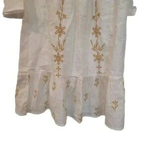 LOV Women's Off-White Cotton & Gold Floral-Embroidered Lined Dress EUC sz S