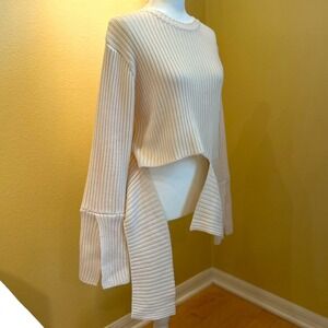 Features: Cropped, Asymmetrical Hem, Ribbed Knit, Slit Sleeves, Bell Sleeves