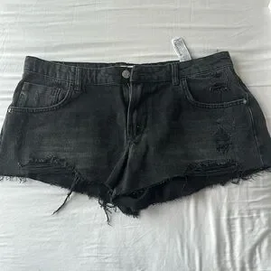 LOW RISE RIPPED DENIM SHORTS