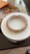 Elegant bangle bracelet with gold accents. Features a cream base with intricate gold details.