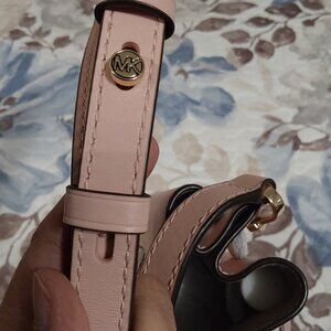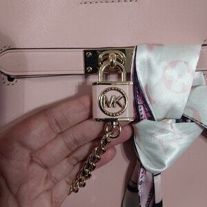 NWT Michael Kors Hamilton Legacy Handbag Smokey Rose Leather Bucket Bag with adjustable strap magnetic snap closure inside slip pockets MK Lock that is detachable and twilly feet on the bottom perfect spring bag