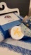 Beautiful blue and white knit throw blanket 50“ x 60“