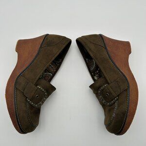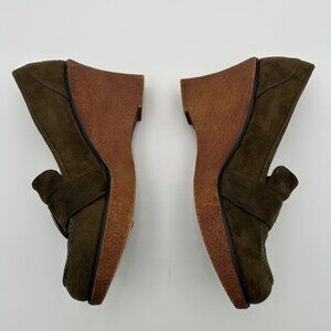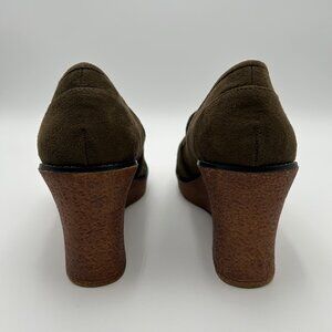 LOWER EAST SIDE VTG Olive Green Suede Wedge Platform Buckle Retro Style Size 9