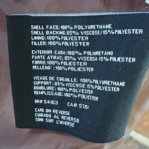 With the exception of a little bit of wear on the left shoulder (please see the picture), this FAUX LEATHER JACKET is in EXCELLENT condition. It is a Ladies, size Large, & is soft and comfortable and ready for you to add to your fall wardrobe! It is machine washable too!