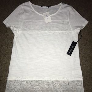 Lace it up! This adorable and trendy ivory top is simply perfect to wearing in the spring and summer. It features lace detailing on the hemline and it perfect with a duster and some shorts or skinny jeans | Size Small - Measures 18” across Bust and 28” shoulder to end - can also use as a lace extender as well..See Measurements