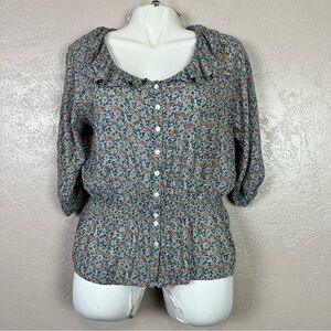 LOWRYS FARM Womans M 3/4 Sleeve TOP BLOUSE Multicolor Floral