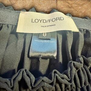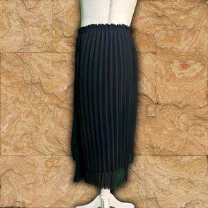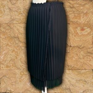 LOYD/FORD Black Pleated Chiffon Slit Front Elasticized Waist Midi Skirt Size 8