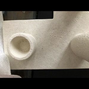 @bluejayellie it’s a great art piece that fits together and holds 6 small candles in it. It has never bern used and was brand new when I received it so there are no candlemarks in it. I an up for a low bid and can send it out tomorrow morning.